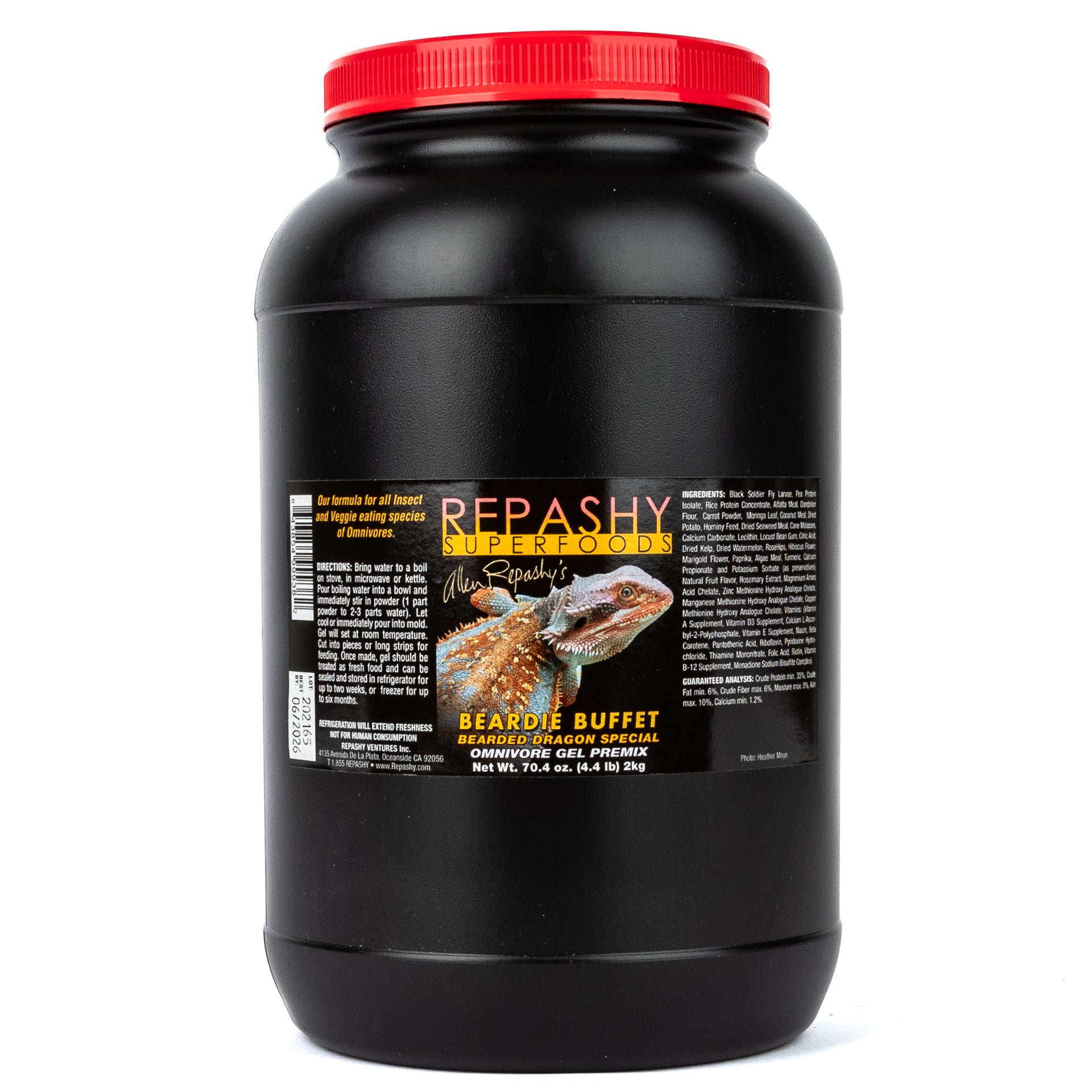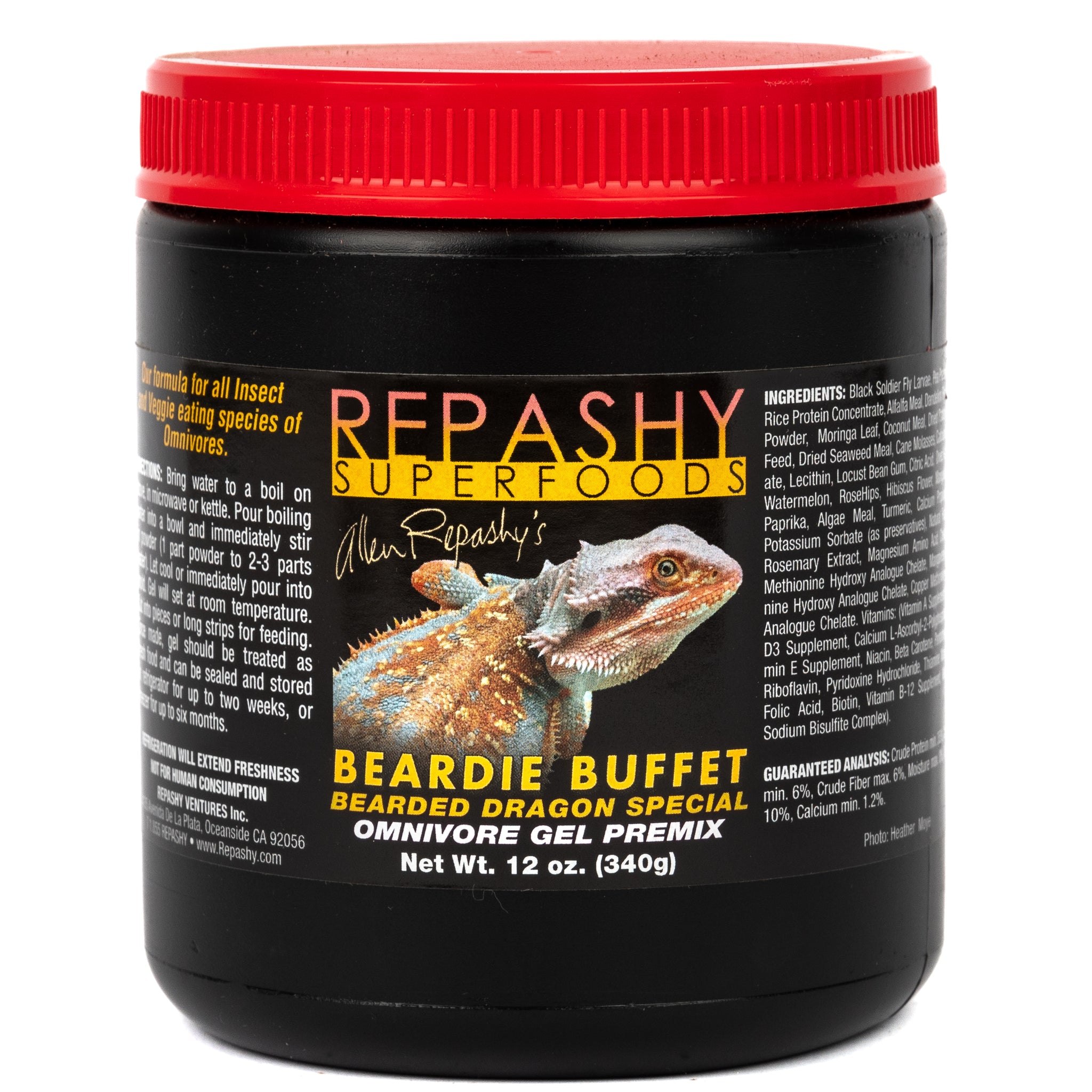 Thanks to their work, this custom blend has become so popular to dragon keepers that we have decided to go ahead and create a factory version to make it easier for keepers to use. The new Repashy Beardie Buffet is a blend of Grub Pie and Veggie Burger as prescribed by Fairytail Dragons, with the addition of a touch of Carrot and Moringa Leaf because these are some exciting new ingredients Repashy has brought in since the original formulation of Veggie Burger. Veggie Burger has also just been revised to include these ingredients as well.