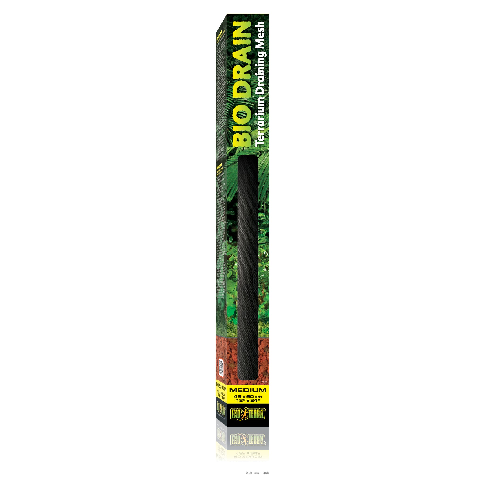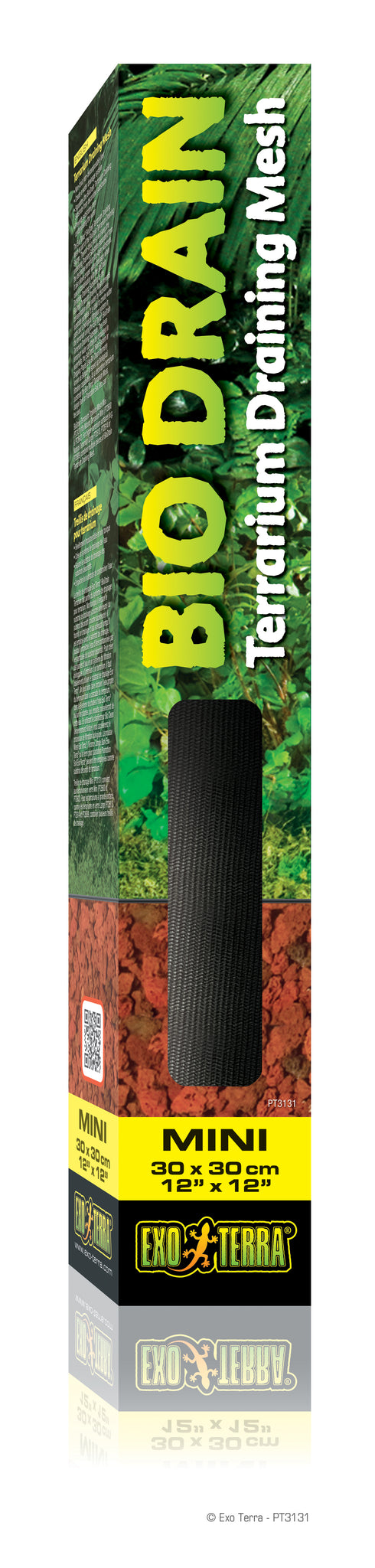 The Exo Terra BioDrain Terrarium Draining Mesh is part of the BioDrain Terrarium Draining System. The non-toxic mesh will keep the underlying Draining Substrate separated from the decorative terrarium top-layer substrate. It also allows proper water drainage when used in combination with the BioDrain Terrarium Draining Substrate, as the BioDrain Terrarium Draining Mesh prevents contamination of the water by decorative substrate particles. It is ideal to create water parts and a biological filtration system in the terrarium using the Exo Terra BioDrain Terrarium Draining Substrate. The clean terrarium water can then be circulated in waterfalls, the Exo Terra Rain System or Dripping Plants. As a decorative terrarium substrate the Exo Terra Terrarium Moss, Jungle Earth or Plantation Soil, etc. can be used.