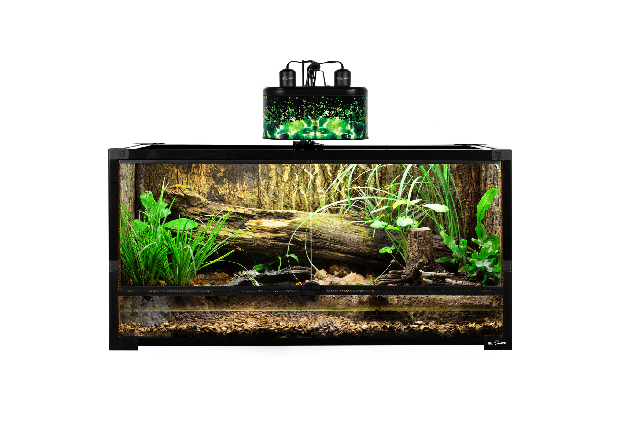 Central to its design is a comprehensive ventilation system. The removeable mesh top cover provides plenty of ventilation for proper air-flow throughout the enclosure and allows full spectrum, UVB, and IR light penetration. Complementing this, front ventilation strips are strategically placed to further promote air-flow and minimize humidity build-up in the habitat, ensuring a healthy, non-stagnant environment.
