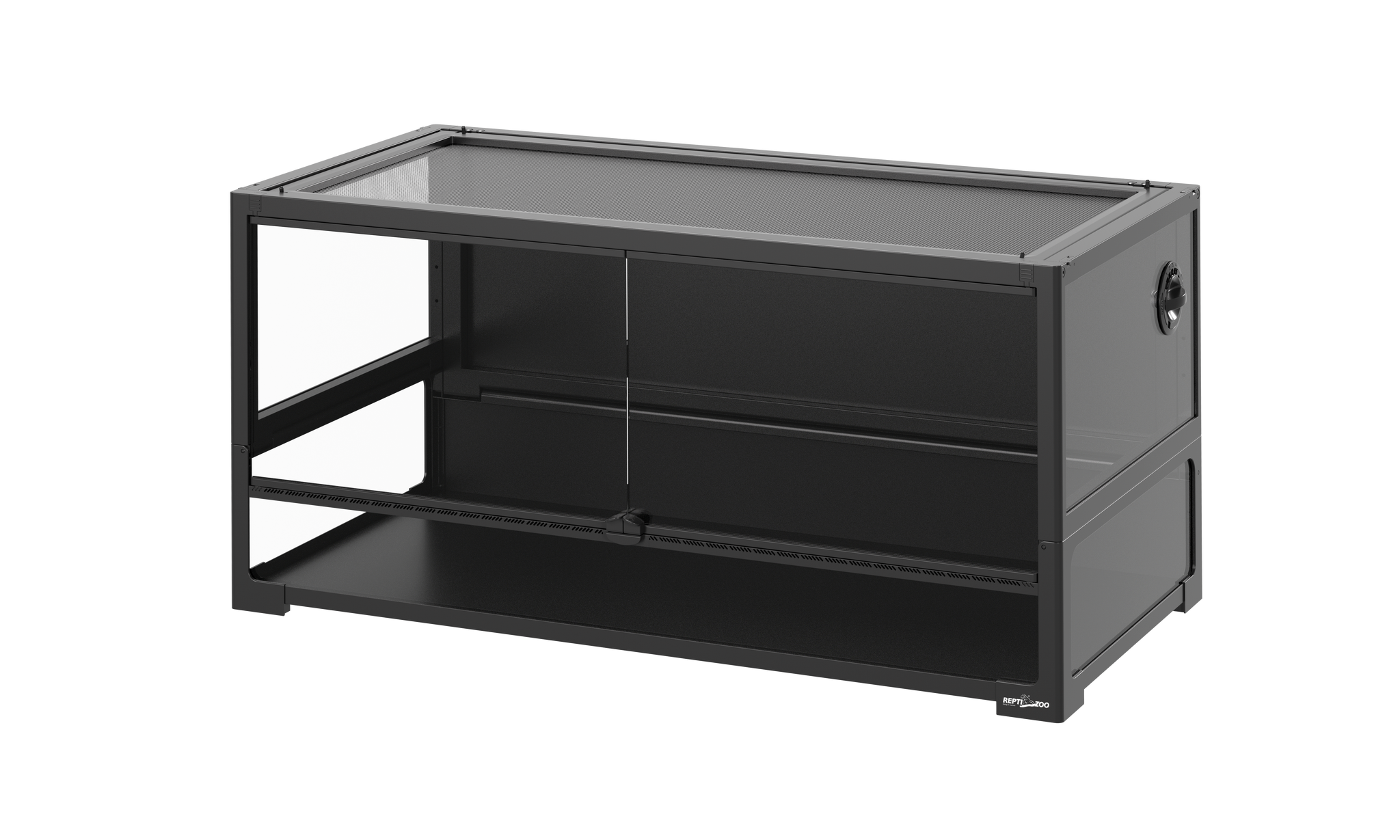 Functionality is key: an integrated cable pass system is designed for neat management of power cords or airline tubing, keeping your setup organized and aesthetically pleasing. Maintenance and daily interaction are effortless thanks to detachable front doors that allow for thorough cleaning, and a convenient one-hand opening door handle for smooth, quick access. Built for versatility, a water-tight base makes it perfectly available for amphibian and aquatic environments. An added raised bottom frame facilitates the mounting of a substrate heater or heat cable, enabling you to create optimal hot and cold zones with ease. For terrariums with a length ≥60cm (23.6''), a black PVC panel is strategically integrated to reduce overall weight and enhance safety.