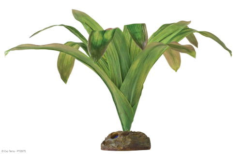 The Exo Terra Dart Frog Bromelia is a very realistic bromelia as found in most frog habitats. The overlapping waxy leaves provide an ideal platform for the female frogs to deposit their eggs. The urn-like rosette retains water, used by the frogs as pools and to deposit their tadpoles, and is detachable for easy cleaning or for collecting the tadpoles.