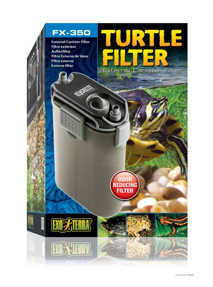 The Exo Terra Turtle Filter FX-350 provides an odor reducing filtering system for larger turtle tanks, paludariums or aquatic terrariums. Comes complete with spray bar system for better aeration and all necessary filtration media.