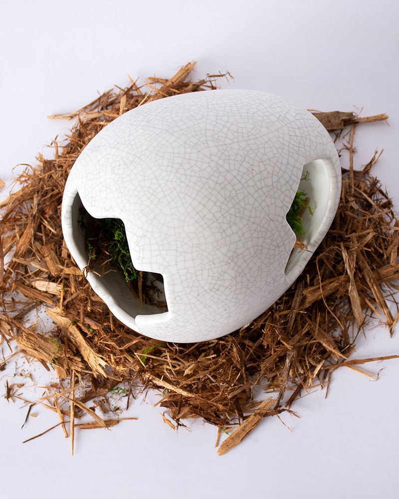 The Galápagos Egg Hide is the perfect hide that can complement any terrarium style! These hides help reduce stress by proving a dark, safe space for animals to feel secure. Their non-porous surface helps prevent harmful bacterial and fungal growth. Fill with damp moss to create a humidity hide to help aid in shedding. Ideal for reptiles, amphibians, and invertebrates.