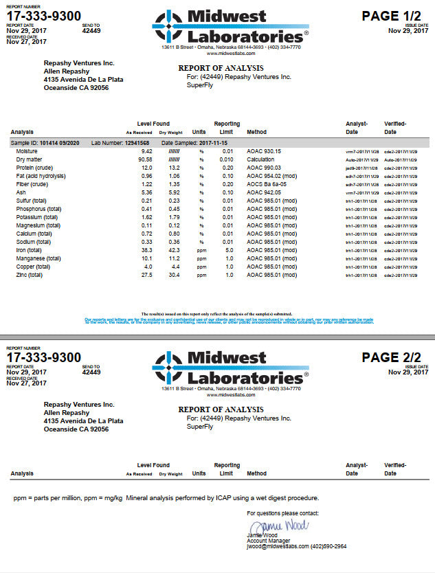 DIRECTIONS: For a typical 32 oz. size deli container, add 1/4 cup Superfly to 2/3 cup HOT water (distilled or bottled if possible) and stir until blended. Finished mixture should be thin enough to flatten out when container is tapped on table. Let sit for a few hours to completely absorb water. Add water or media to adjust if necessary. Add Flies and keep at approx 75F. Culture should begin to produce larvae in 5-7 days and flies in 10-15 days depending on temperature.