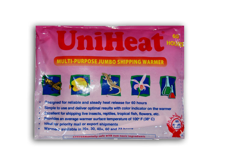 These unique warmers were designed specially for shipping fish and corals. They are used worldwide by wholesalers and fish exporters. The UniHeat Tropical Fish Warmer will warm up and is ready to use within 3-5 minute of being exposed to the air, no kneading or shaking required. One heat pack will increase the temperature of a 1 cu. ft. box by 20 degrees, for every additional heat pack that you use the temperature will raise an additional 10 degrees.