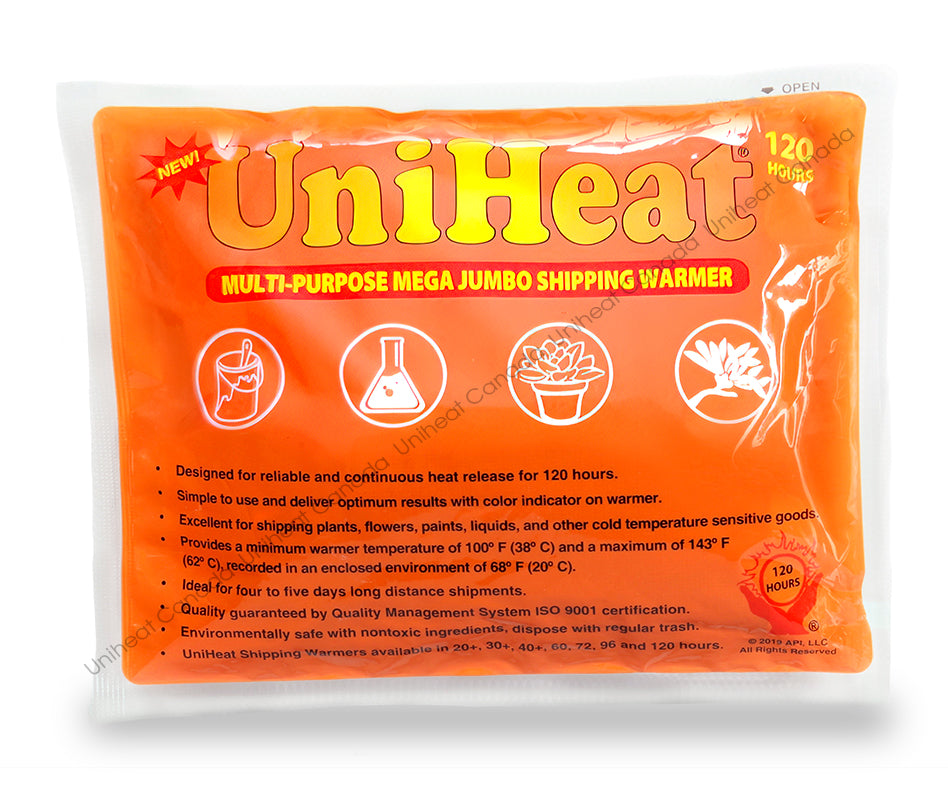 - Produces an average temperature of 70°F in a standard 1cu. ft. shipping box.