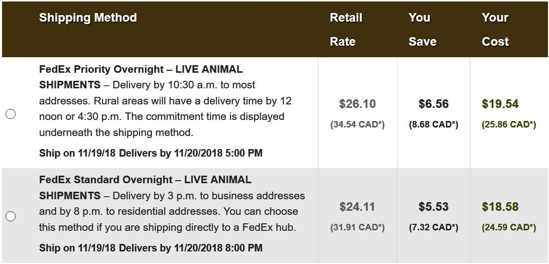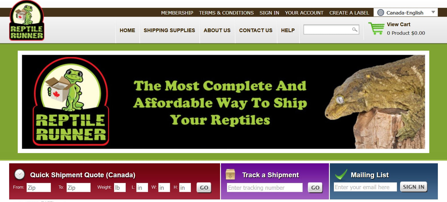 1. Get a quick shipping quote on ReptileRunner.ca – This quote does not include the cost of the shipping box and supplies.